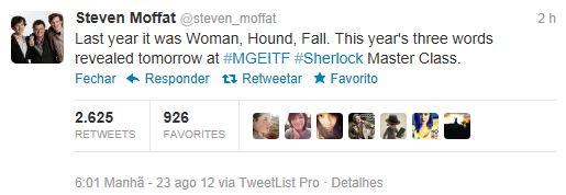 "No ano passado foi A Mulher, O Cão e A Queda. As três palavras deste ano serão reveladas amanhã no MGEITF Sherlock Master Class."
