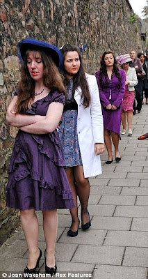 » No mesmo dia, o DailyMail publicou algumas fotos do set da série, onde podemos ver vários figurantes em roupas de gala e os atores principais cobertos por compridos casacos que, infelizmente, não conseguem esconder os adereços por baixo. Especialmente, o longo vestido de Amanda Abbington.